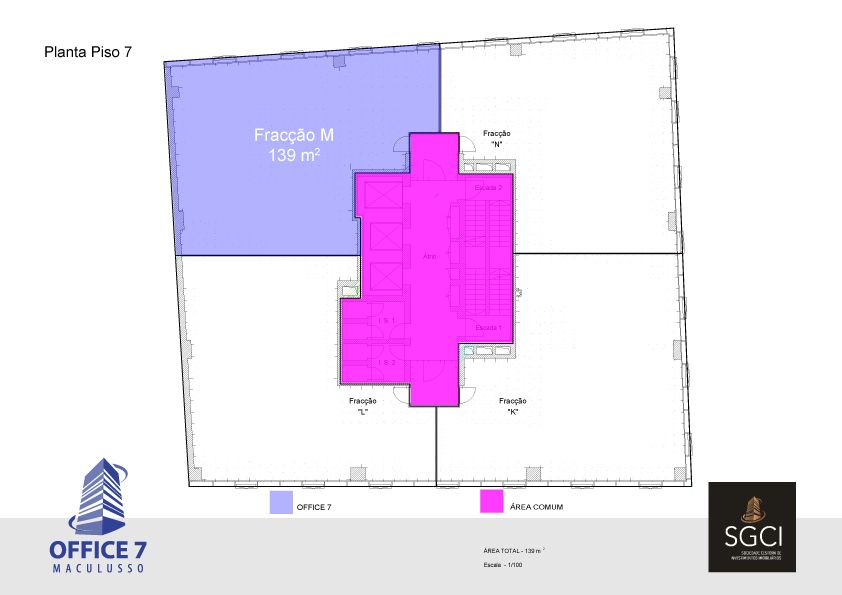 O 7 Piso e possue 4 grandes frentes de janelas com muita luminosidade natural e em open space.